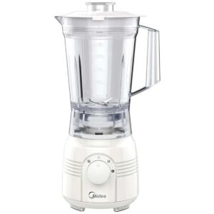 تصميم أنيق بوعاء بلاستيكي متين وشفرات ستانلس ستيل حادة لنتائج خلط ناعمة وسريعة.