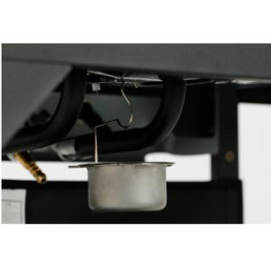التصميم مزوّد بـ رف جانبي ورف سفلي لتسهيل ترتيب الأدوات والمكونات أثناء الشوي.
