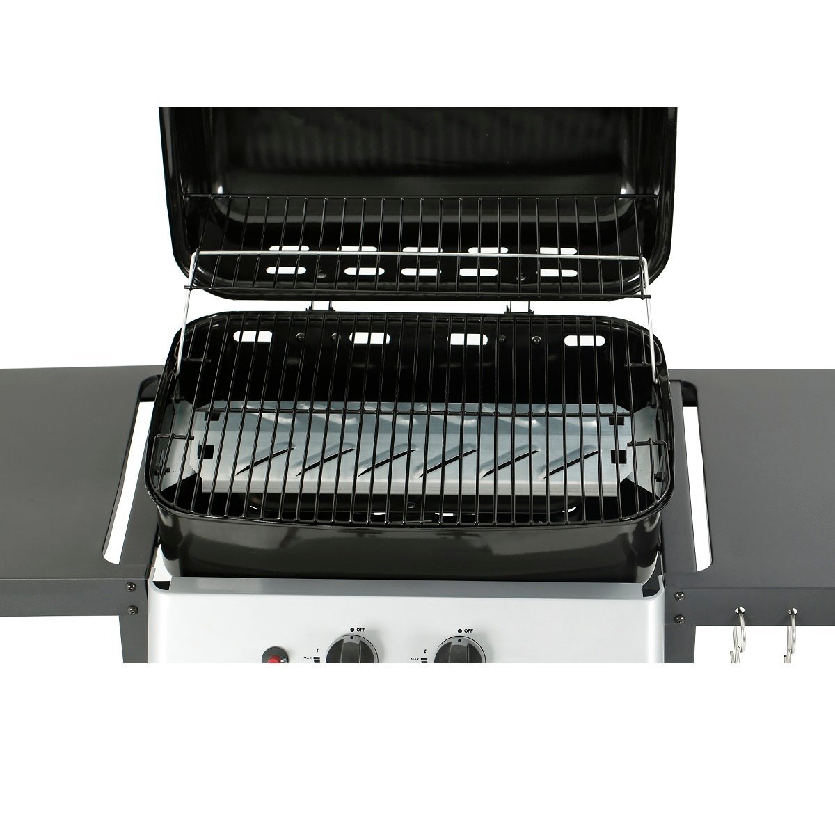 تحتوي الشواية على شعلتين قوية توفر توزيع حرارة متساوي لمنطقة الطهي بحجم 50×36 سم، مثالية لتحضير اللحم، الدجاج، أو حتى الخضار المشوي بسرعة ودقة.
