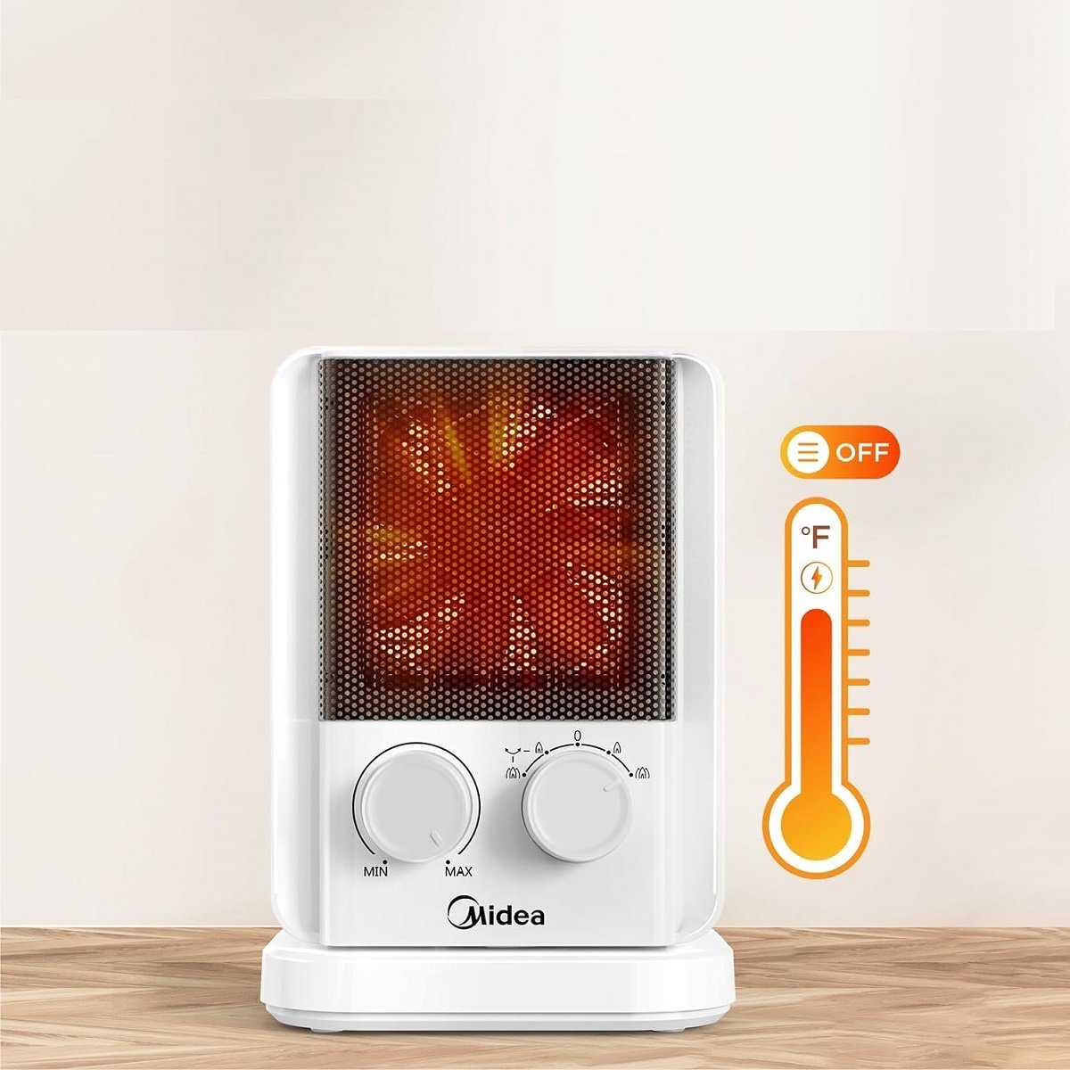 خلك دافي ومرتاح مع مدفأة المروحة الصغيرة من ميديا، الخيار المثالي لتدفئة الغرف الصغيرة والمكاتب.